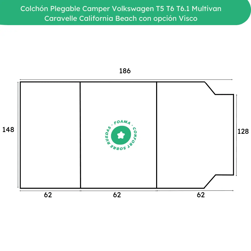 Colchón camper de alta calidad para Colchón Plegable Camper Volkswagen T5 T6 T6.1 Multivan Caravelle California Beach con opción Visco. Fabricado en espuma firme o con capa de viscoelástica para un descanso superior. Plegable en varias secciones para facilitar transporte y almacenaje. Funda extraíble y lavable.