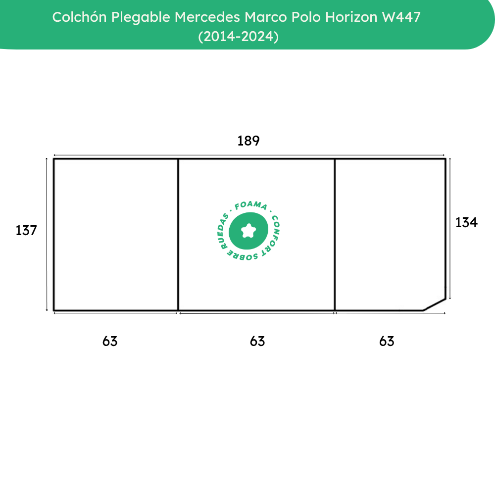 Colchón camper de alta calidad para Mercedes Marco Polo Horizon W447 (2014-2024). Fabricado en espuma firme o con capa de viscoelástica para un descanso superior. Plegable en varias secciones para facilitar transporte y almacenaje. Funda extraíble y lavable.